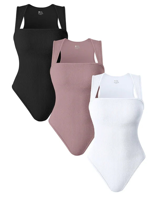 Square Neck Sleeveless Bodysuits - Hot Sale 50% Off