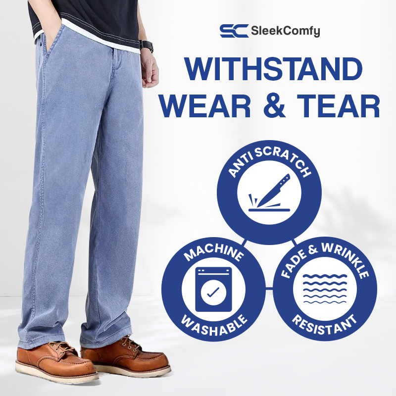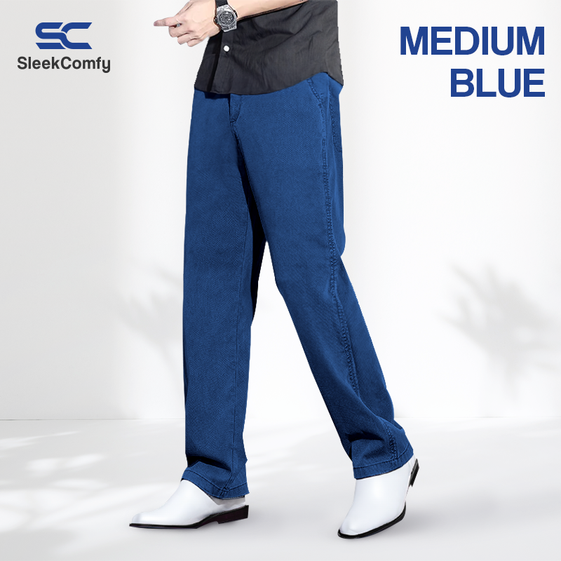 SleekComfy - All Day Comfort Straight Regular Fit Denim Trousers