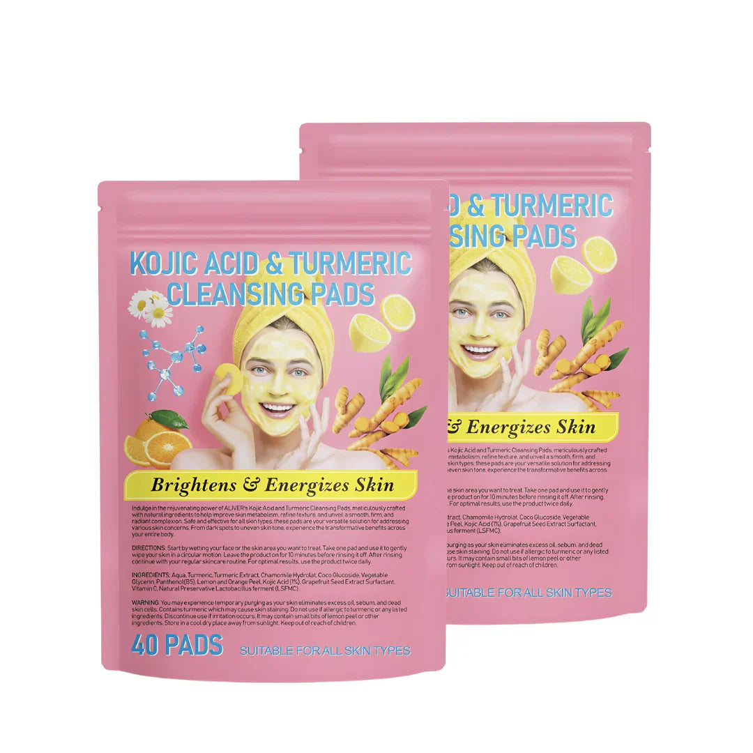 Brighten and Smooth Your Skin: Transform your complexion with Turmeric Kojic Acid Exfoliating Cleansing Pads. These powerful pads reduce dark spots and hyperpigmentation, giving you a clearer and more even skin tone.
